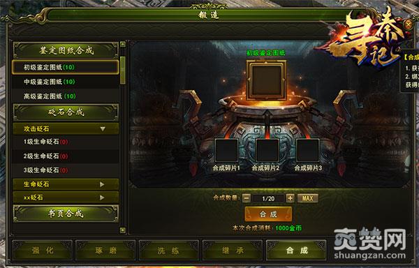 目前为止主要合成类别有鉴定图纸合成、砭石合成,后期也会开发更多的增强型道具,以拓展装备强化途径。在37《寻秦记》中,合成系统也是一个高手们常来的地方,快来打造属于自己的传世神装吧!
