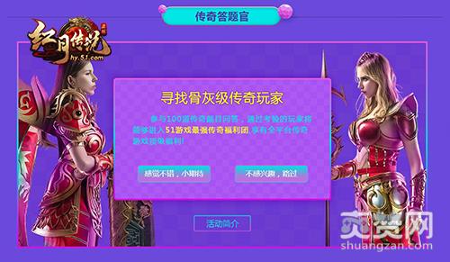 51游戏寻找骨灰级传奇玩家,组建最强传奇玩家福利团。通过100道传奇题目考验的玩家,将能够进入福利团,并享有51游戏平台所有传奇游戏顶级福利和专有贵宾级服务。