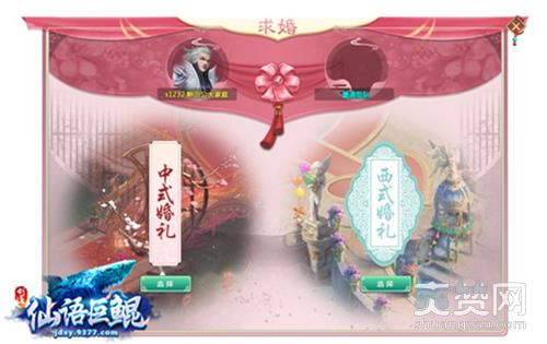 9377《仙语巨鲲》婚礼分为中式和西式两种类型,中西式婚礼的区别为时装外观不同,其他一样。要注意的是,为了让大家婚后生活美满且轻松回味结婚当日的浪漫气息,在游戏中,夫妻双方是可以不断重复结婚的哦。