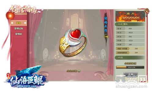 除此之外,9377《仙语巨鲲》游戏中的已婚玩家可以开启婚戒系统。玩家穿戴婚戒后无法脱掉,也无法被替换,若玩家更换更高品质的婚戒,则原来的婚戒会被摧毁。婚戒可以升级,达到经验值后就可以升级至下个等级,玩家可吞噬背包中的婚戒和爱情果实来提供婚戒升级所需要的经验。