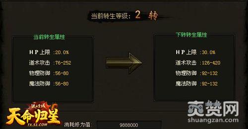 当小伙伴们达到100级就可开启转生系统啦!转生后可获得大量属性加成哦!转生需要消耗修为值,在51《铁血皇城》中游戏中共有15个转生级别,小伙伴们可以降低自己的等级来兑换转生修为值,低于100级是不可以降级兑换修为的哦!而且每天最多可兑换5次!