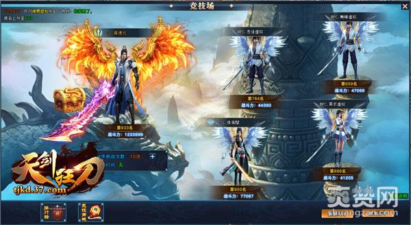 为了保证参与竞技场活动的玩家的实力,37《天剑狂刀》的竞技场会在玩家完成主线任务后开启,每位玩家每天可免费挑战10次,每次挑战后均有冷却时间,打开竞技场界面,你将看到挑战对象的战斗力信息,玩家可根据自身的实力,挑选对手进行决斗。