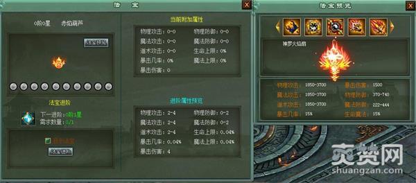 练就最强法宝征服玄幻传奇世界,法宝可以为每个角色提供大量的额外属性,让你的角色变得更加完美,每个玩家都会获得一个一阶法宝,通过不断的修炼将法宝提升到轮回之境,使用法宝进阶丹可以使法宝进阶同时法宝还会更新新的外观,增强实力的第一步就是锻造你的奥秘法宝!