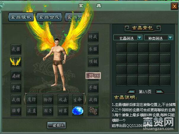 获取上古玄晶打造最强装备属性,玄晶可以通过击杀BOSS掉落每一个玄晶都能附加不同的特殊效果,同时玄晶镶嵌在部位上即时更换装备也不会受影响,每件装备可以镶嵌4颗玄晶但不能是想通类型的玄晶,同时玄晶还能通过三个低级的合成更高级的,搭配十级玄晶打造最强战神!