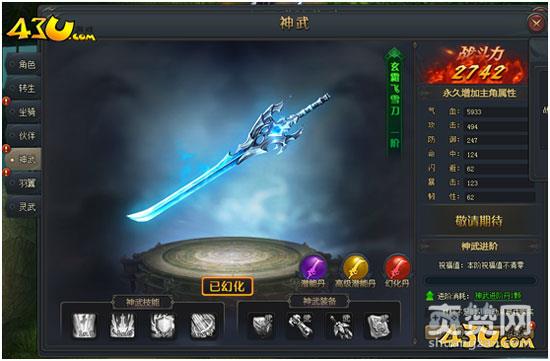 43u《斗罗大陆》神武系统在玩家们登陆第二天即可开启,主要功能是给主角们提供被动技能与属性加成,神武的等级越高增加属性也随之越多。想要获得高属性,那必须是要付出努力进行提升的,此处神武共分为十阶,玩家需要通过提高神武等级可以激活不同的神武外形。