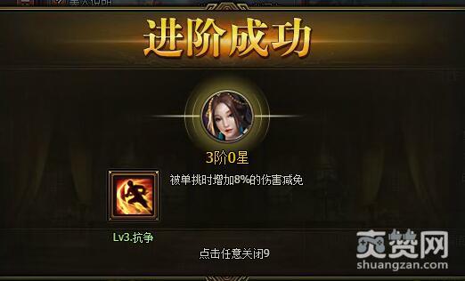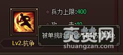 2级抗争升3级抗争时,3级抗争规定:被单挑时增加8%的伤害减免。