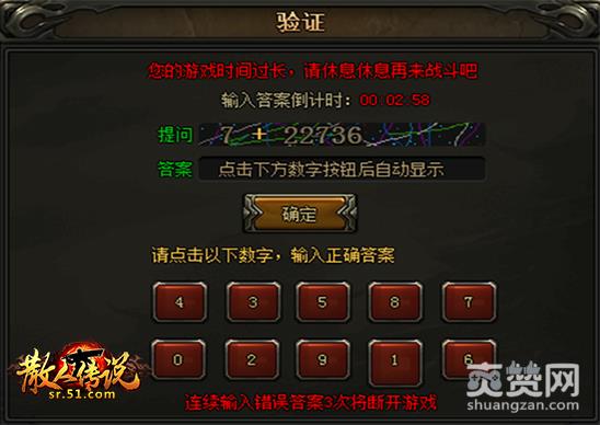 为了防止用辅助挂机系统,一旦游戏玩的时间到达一定时长,就会跳出一个验证界面需要大家输入答案。不过不要担心,都是很简单的数字加法,而且输入正确了还可以得到比较好的奖励喔~但是如果连续错误答案3次,游戏将自动断开。