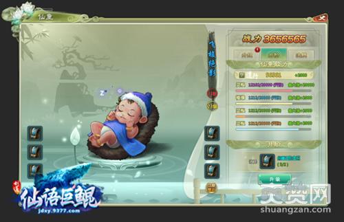 在游戏里,9377《仙语巨鲲》玩家可以对仙童进行升级、升阶培养。仙童升级后基础属性会增长,而升阶后,仙童的外观会发生变化哦。除此之外,通过消耗蟠桃可对仙童进行洗髓,洗髓会随机提高9377《仙语巨鲲》仙童的道行属性,使用普通洗髓可能会有属性降低,若使用高级洗髓则属性100%提升。