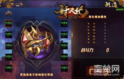 我们可以将打boss,做任务等途径获得的灵石,用来强化装备。哦!对了!51《封天记》里可以一键强化所有装备框,而且强化之后,无论替换什么样式的装备,强化等级都不变,终身受益!是不是很厉害?大家也可以自己做个手艺人,根据需要来强化装备哦!