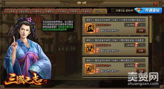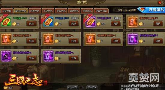 玩家获得奖励金之后,可以在奖励金专属商城中兑换自己想要的道具,其中包括:VIP1经验卡、VIP2经验卡、VIP3经验卡、橙色/紫色武将兑换券、橙色/紫色装备兑换券、橙色/紫色宝物兑换券。