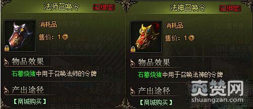 你以为这样就能毫无顾忌地进去挑战了么?那就太草率了,在我们以前的任务、活动、boss等等挑战的时候,都有机会获得一个道具叫做“法师召唤令”以及“法神召唤令”,这是我们石墓烧猪的必备消耗道具。