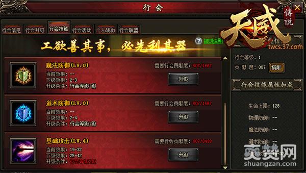 “增加的行会资金”和“获得的个人贡献”也会随捐献金币数量及元宝数量的不同而改变。在行会技能界面,玩家可以使用行会贡献度升级行会技能,行会技能升级条件受“行会等级”和“行会贡献度”限制。