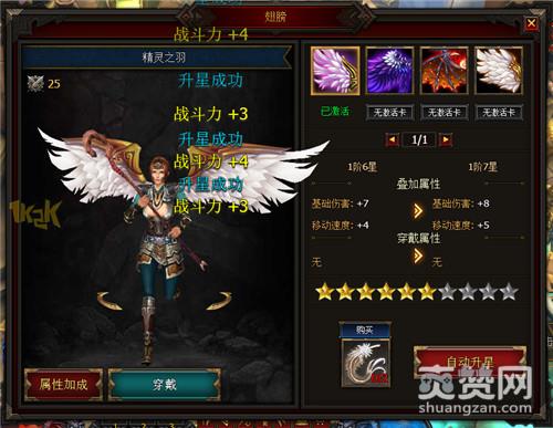 1k2k《圣剑神域3D》中需要使用对应的翅膀卡才能获得翅膀,每个翅膀有4条属性,所有获得的翅膀属性累加。