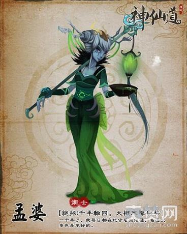孟婆,是古代神话传说中的人物,常驻在奈何桥边。她为所有前往投胎的灵体提供孟婆汤 ,以消除鬼魂的记忆。传说孟婆年纪老迈,不过在923yx《神仙道》中的孟婆却十分年轻, 只需要花费15W的声望即可在客栈中招募。