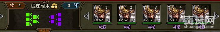 我们试着挑战一下困难难度的马超,进入战场,战场地形是城池,对手是5个马超62级。