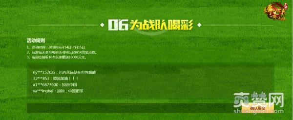 如何获得竞猜点呢?我特意为大家准备了喝彩活动,参加就可以获得竞猜点了。既能支持自己喜欢的球队,又能增加竞猜点,玩家们快来摇旗呐喊吧。