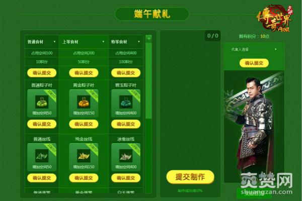 我们的代言人古天乐也是很忙,前脚刚从演武场出来,后脚就来和大家一起包粽子啦!要注意的是,粽子中每种食材最多放一种,选择更好的工具有助于成功制作出粽子。每日签到,领取节日礼包和充值(1元=1分)都可以获得额外积分,积分就可以用来包粽子啦!