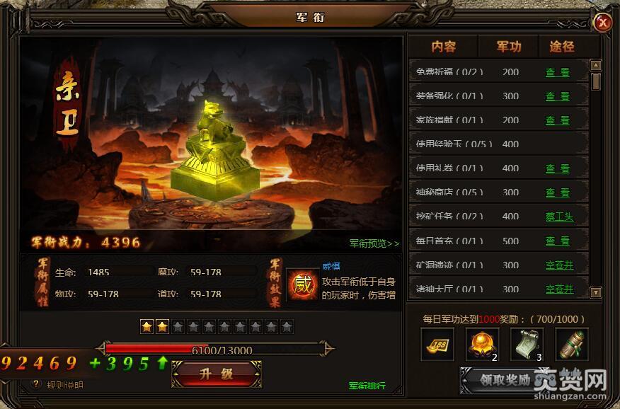 装备强化1次。获得军功300点。