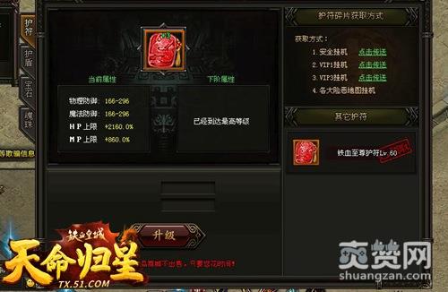 护符可以增加生命值与魔法值。护符碎片主要通过安全挂机、VIP1挂机、VIP3挂机以及各大地图挂机获得。