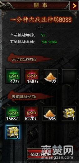 第55关:角色经验*42万,英雄经验*168万,秘宝粉尘*22。