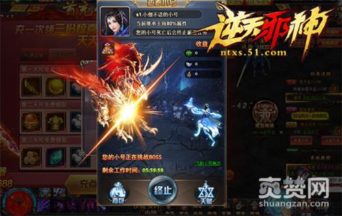 51《逆天邪神》是同名小说正版改编的玄幻题材网页游戏,游戏携经典模式“ARPG+SLG”强势回归,创新性的打造出“一角双号”并实现了“自定义角色”设定,将经典与个性相结合,让微操与策略相统一,再一次重新定义网页游戏。如果有一天,钱,有人给你赚,装备,有人给你打,就连经验,都有人给你攒,你开不开心?51《逆天邪神》的小号系统,就是这么一个玩意儿。直接继承80%战斗力!简直就是完美分身!想像一下,当自己打BOSS的时候,有一个战斗力差不多的号来帮你打,那BOSS的血量,肯定双倍加速减啊!