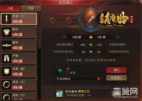 37《镇魔曲网页版》强化系统所需的材料如下:
