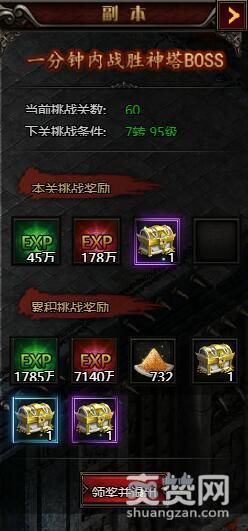 第60关:角色经验*45万,英雄经验*178万,3级神魔宝箱*1