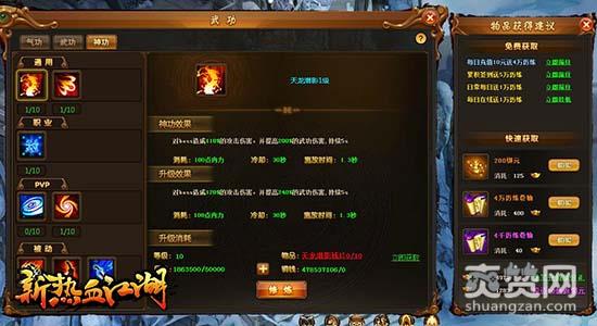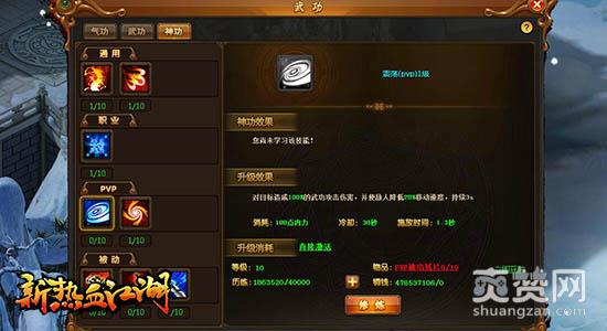 腾讯《新热血江湖》中的技能分为气功、武功与神功三大种类,其中气功与武功学习难度较低,只需要正常升级并获得历练即可习得。而神功的学习却并不容易,正因如此,掌握多种神功将对自己能力的提升起到极大帮助。