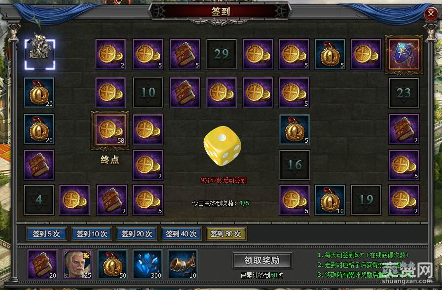 每天可以签到5次,签到次数会累积,达到一定次数就能解锁下面的奖励领取按钮。
