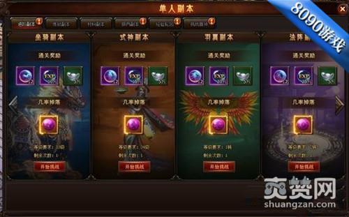 在8090《阴阳道》中,副本分为两大类——单人副本和国家副本。大家可以在副本界面根据自己的需求和喜好选择副本进行挑战。挑战次数将于每日零点进行限次刷新。