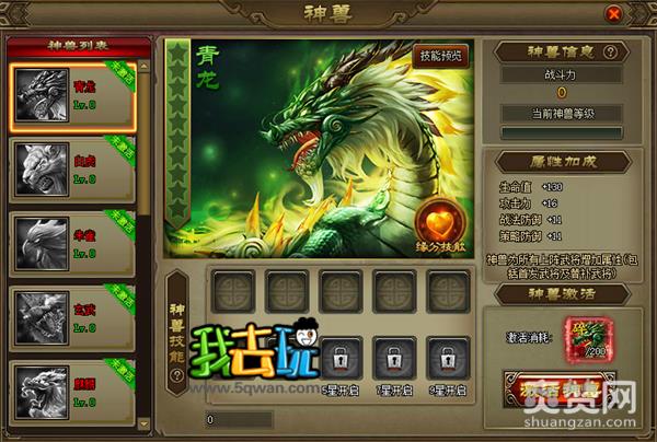 魔神的排名奖励包括了神兽饲料、声望与神兽碎片(这里的神兽碎片一般是被击退神兽的碎片)。当主公在活动中拿到了足够的神兽碎片时,可前往神兽系统中将对应的神兽激活。神兽被激活之后,可为全体上阵武将提供属性加成。主公可同时激活多位神兽,每个神兽所加成属性各不相同。