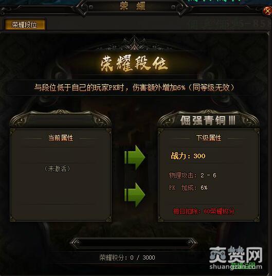 荣耀段位展现自己的真正实力,每个玩家都能从BOSS战斗、每日活跃任务中获得荣耀值,荣耀值不仅能够进阶你的段位同时你拥有更高的荣耀段位会对比你低段位的玩家造成额外的伤害,这个王者头衔可不是闹着玩的,只有强者才配接近巅峰,才配造成更高的伤害!