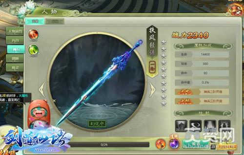 刚开始进入51《剑道仙语》游戏的时候,我们可以跟随一系列的主线任务来到神器任务,从而获得神器,然后提升神器属性加成,点亮技能!其实神兵和神器是相辅相成的,所以我们还得留意一下神兵的成长过程。