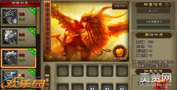 多达十几种神兽形成了完整的食物链,当然这可不是吞噬游戏,青龙、白虎、朱雀、玄武、麒麟、英招、蛊雕、兕、陆吾、鲲、飞廉、钩蛇、朱厌、辟邪、青鸟,令人眼花缭乱的神兽,为所有上阵武将增加属性!神兽通过升级、升星、吞噬碎片可以获得技能点奖励,不一样的神兽都有对应的缘分技能,额外全技能等级加1可是相当恐怖的,而且神兽之间互不干扰,在激活神兽之间相互的缘分之后,将再获得更高层次的加成,所以想提升自己的实力,就赶紧组建自己的神兽大军吧!