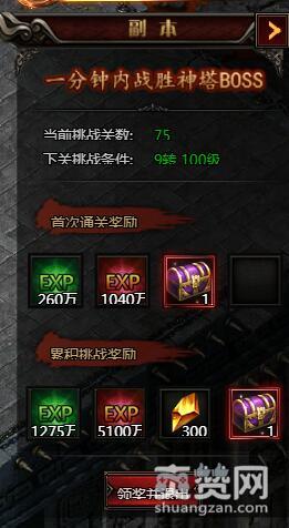 第75关:角色经验*52万,英雄经验*208万,秘宝粉尘*30。