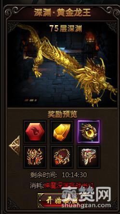 深渊·黄金龙王。盘踞在75层深渊之中,也就是说当玩家通关普通模式第75层,就有一定概率会刷出这个BOSS来。
