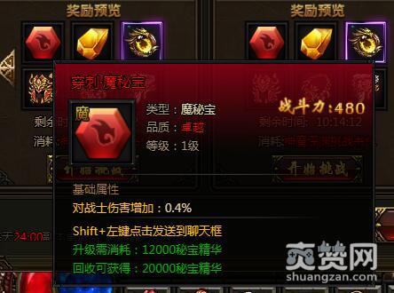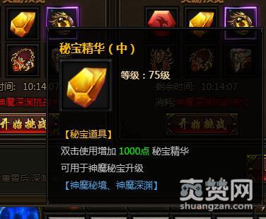 深渊·黄金龙王进入时需要消耗神魔深渊挑战书1本。挑战书可以在神魔秘境中刷。掉落的宝物分别是(并不是一定掉,有些宝物是含概率掉落的):穿刺·魔秘宝(卓越)、秘宝精华(中)、BOSS精华(中)、天启战盔(10转)、天启战链(10转)、天启战带(10转)。其中最极品的自然属于穿刺·魔秘宝了。作为品质卓越的魔秘宝,它能在PK时给玩家带来对战士伤害增加0.4%的效果。如果打出实属不易,玩家多多珍惜。