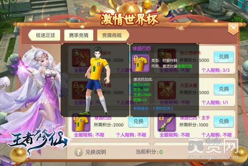 2018世界杯正在火热进行中,一起来感受这份激情与快乐吧!从6月28日到7月15日,你可以通过每日登录、击杀BOSS和寻宝获得竞猜足球,参与赛事竞猜为自己支持的队伍下注,猜中者可以获得积分,在竞猜商城中兑换限时套装【绿茵巴西】,还有神品坐骑【九尾】、神宠【孙小圣】碎片哦!
