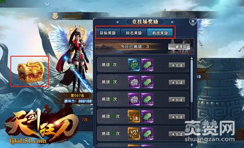 竞技场中的每档目标奖励只可领取一次,每天主动挑战达到一定次数,即可领取目标奖励,这些都可以在宝箱中查看,所以各位玩家要记得上线守住排名或冲击更高排名,以便获得更好的奖励哦!