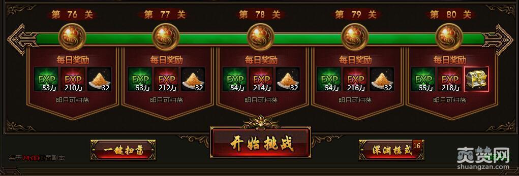 第78关:角色经验*54万,英雄经验*214万,秘宝粉尘*32。
