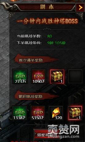 第80关:角色经验*55万,英雄经验*218万,4级神魔宝箱*1。