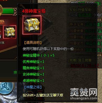4级神魔宝箱。使用可随机获得以下奖励中的一份。