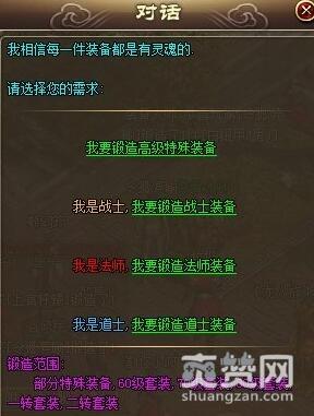 找到923yx《屠龙传说》中的装备大师,点击相应职业锻造装备选项,就能打开装备打造界面。若大家拥有足够的战魂、法魂、道魂,还可以找装备大师打造高级特殊装备。此外,通过高级装备锻造,可以把前面收集的战魂、法魂、道魂融入前一阶装备,从而把装备锻造提升为更加高级的装备。