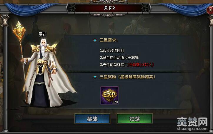 关卡2,对战罗斯。三星奖励,经验值120点。