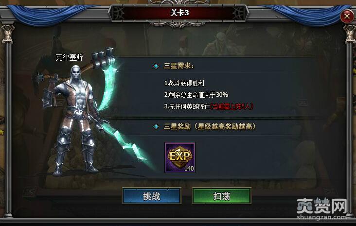 关卡3,对战克律塞斯。三星奖励,经验值140点。