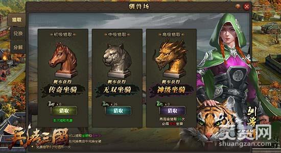 作为流芳百世的三国名将,传世名驹自然不可少,腾讯平台《兵法三国》驯兽场玩法即是获得神级坐骑的不二选择,通过狩猎将有机会获得近百种不同武将专属坐骑,让你麾下的武将发挥出更多未知潜力!腾讯《兵法三国》现于QQ空间、QQ游戏大厅同步火爆开服中!