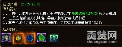 活动基于天机城站之后引发的活动,天机城站的成员需要保护王族宝藏从宝藏出发点到达皇宫,一路上会有非天机城帮会的玩家进行对宝藏的袭击。