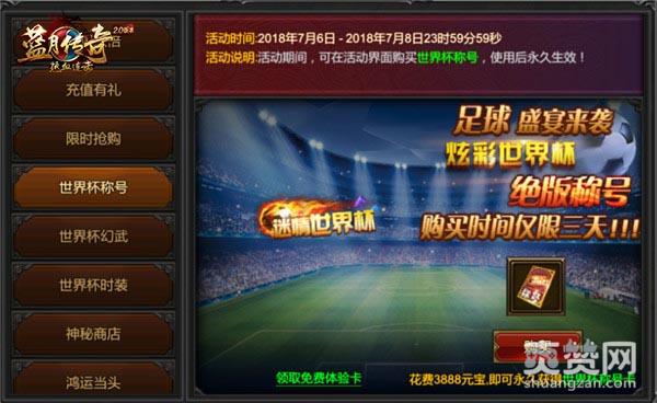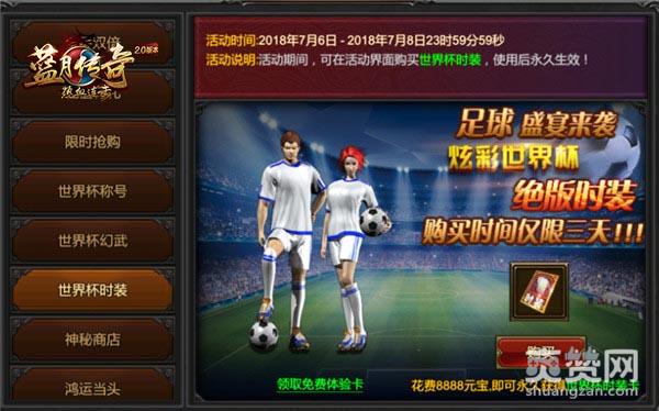 2018俄罗斯世界杯正如火如荼的进行中,贪玩《热血连击》迷情世界杯活动也重磅来袭,7月6日~7月8日活动期间,玩家可以在活动界面限时抢购永久“情迷世界杯”绝版称号,还可以免费领取体验卡哦!