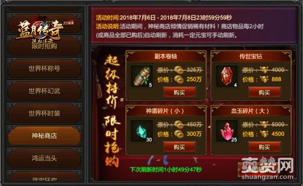 在贪玩《热血连击》迷情世界杯活动期间,神秘商店火爆开启,琳琅满目的稀有物品,珍贵无比的极品材料,全部以超低价格福利出售,并且商店物品每2小时自动刷新,消耗一定元宝可立即刷新,刷新后每样物品限购一次。