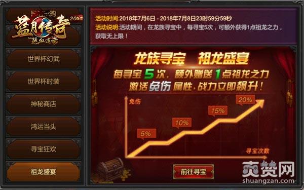 在贪玩《热血连击》迷情世界杯活动期间,玩家可以开启龙族寻宝之路,尽情享受祖龙盛宴。并且在龙族寻宝中,每寻宝5次,可额外获得1点祖龙之力,获取无上限,激活免伤属性,战力立即飙升!想要变强?就来龙族寻宝吧!
